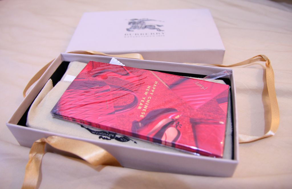 打開後,收到應景的紅包袋,下層則是防塵布包著的皮夾。
