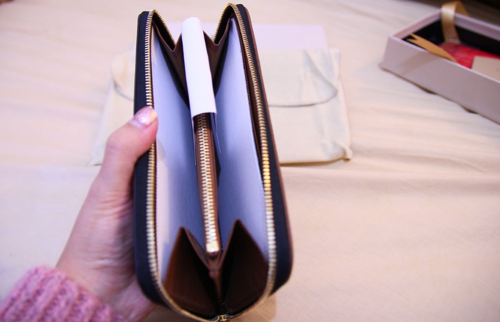 打開皮夾後,裡面還有硬紙板固定包型,從小細節看到品牌的用心~